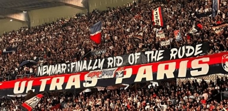 Torcida do PSG comemora saída do Neymar com faixa pra lá de agressiva