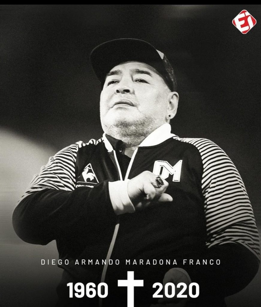 A notícia, que tantas vezes correu como boato, desta vez foi confirmada pelo jornal argentino El Clarin Morreu na manhã desta quarta-feira (25), o jogador argentino Diego Armando Maradona. O craque completou 60 anos em outubro deste ano. Maradona sofreu uma parada cardiorrespiratória em sua casa em Tigre. Assim que correu a notícia de que Maradona havia sofrido uma descompensação, as mensagens de incentivo se multiplicaram e fizeram da frase “Fuerza Diego” uma tendência, mas logo depois, quando a morte foi confirmada, milhares de mensagens de todo o mundo inundaram as redes.