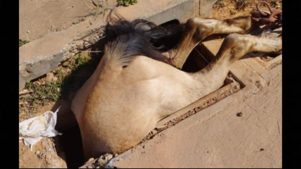 Cavalo que ficou entalado em bueiro foi resgatado e passa bem
