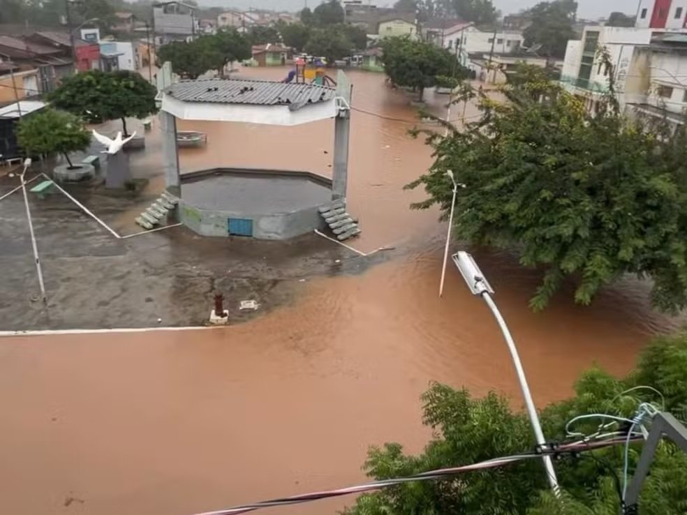 A cidade de Espinosa, no Norte de Minas, registrou alagamentos em diversos bairros após a forte chuva que atingiu o município na madrugada deste domingo (1). Segundo a Defesa Civil, choveu 97 mm até 5h30 e houve mais precipitações ao longo da manhã, o que elevou o nível do Rio São Domingos e provocou transtornos em várias regiões.